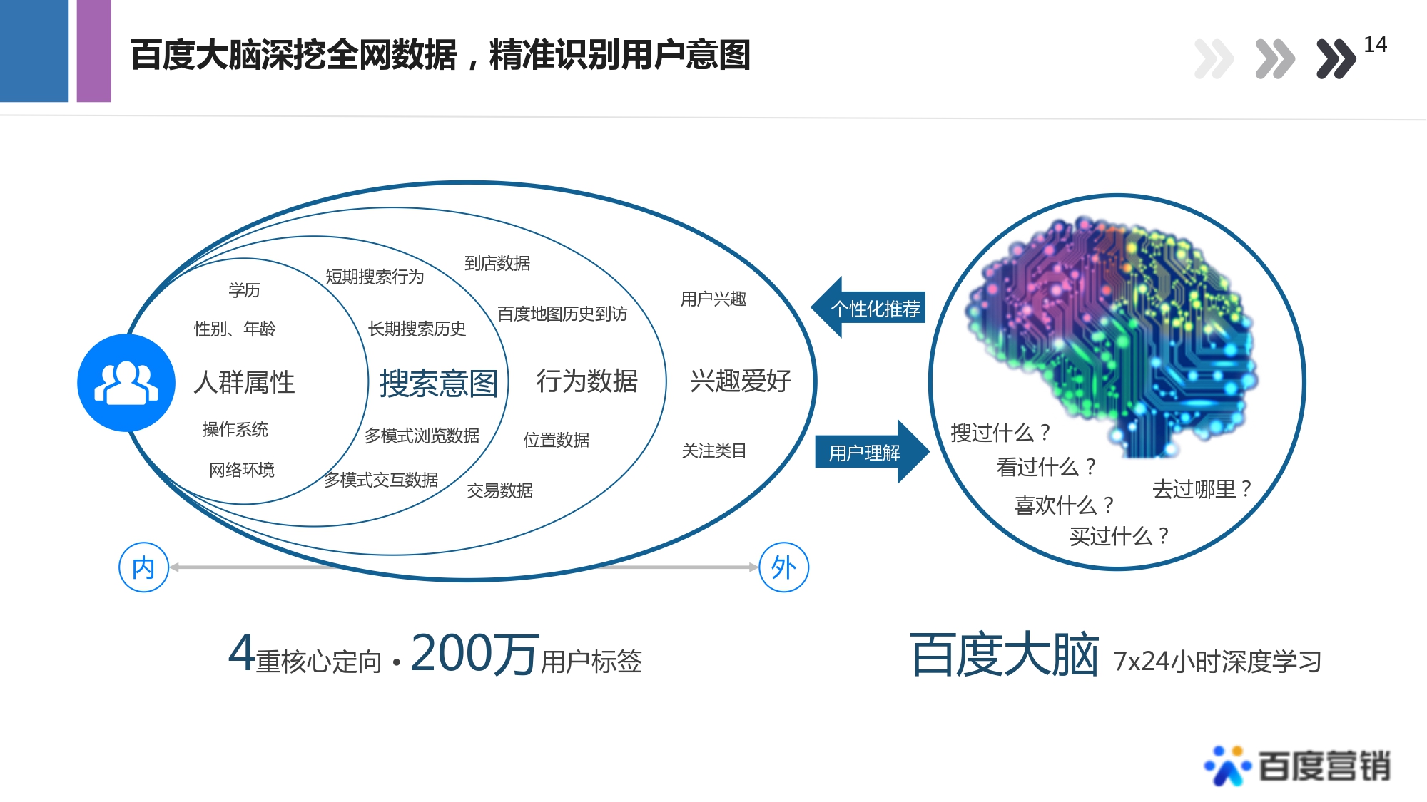 搜索推廣基于百度搜索引擎,用戶搜索關(guān)鍵詞,在百度搜索結(jié)果的顯著位置展示企業(yè)廣告信息,并幫助企業(yè)把用戶有效轉(zhuǎn)化為客戶的一種營銷方式。